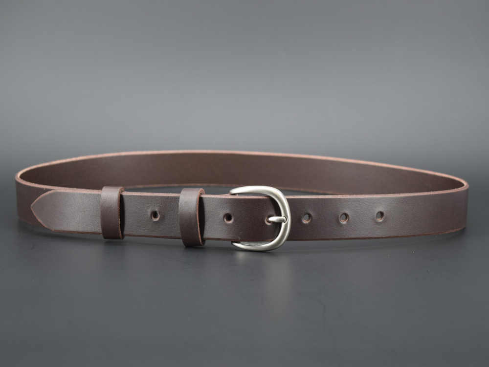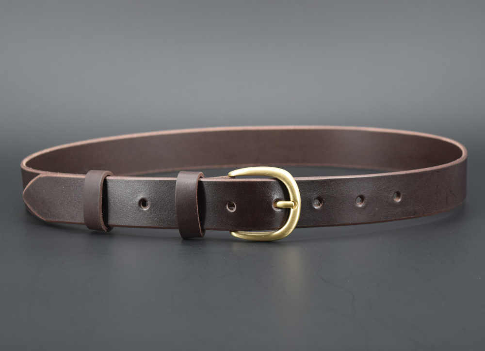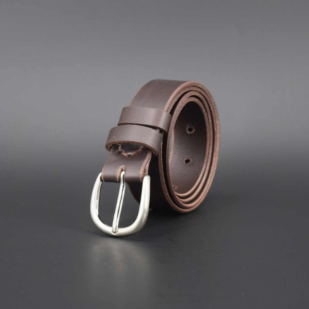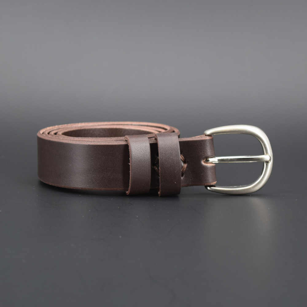Cette ceinture a une boucle en laiton de 3 cm de largeur, qui conviendra parfaitement à une tenue habillée ou décontractée. Son cuir est souple ; il a été teinté dans la masse ce qui lui permet de garder sa couleur marron chocolat tout au long de sa vie.