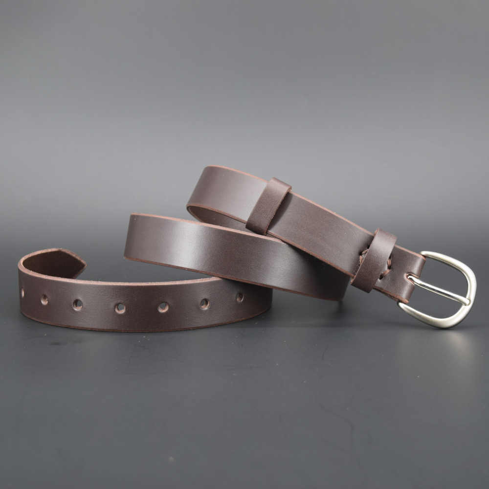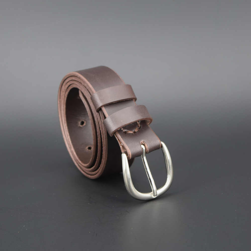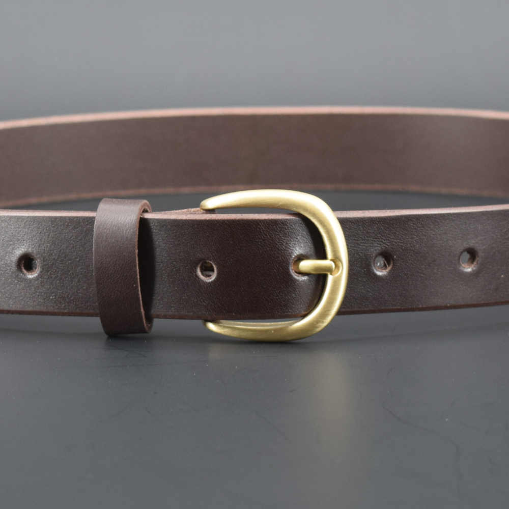 Cette ceinture a une boucle en laiton de 3 cm de largeur, qui conviendra parfaitement à une tenue habillée ou décontractée. Son cuir est souple ; il a été teinté dans la masse ce qui lui permet de garder sa couleur marron chocolat tout au long de sa vie.