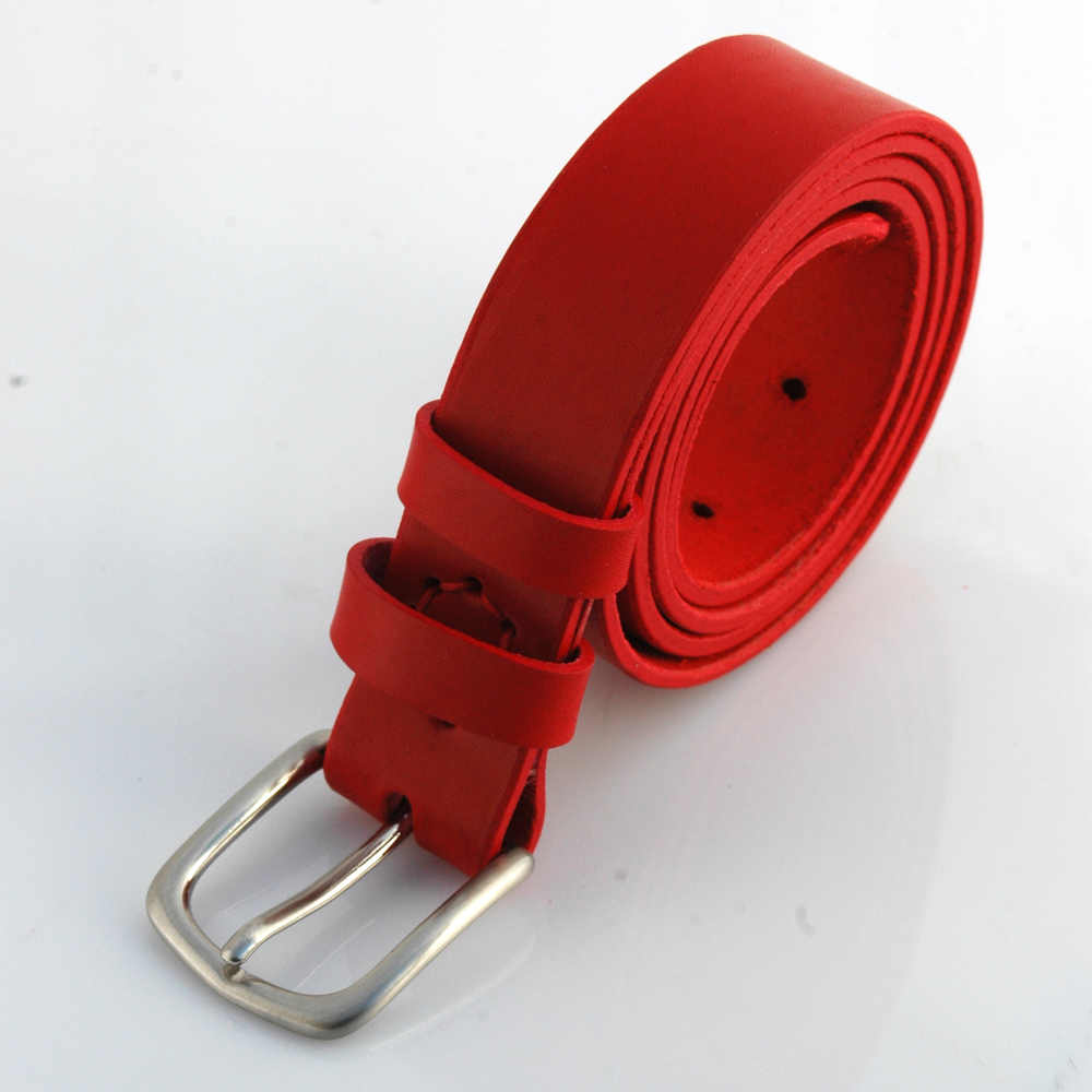 Ceinture en cuir rouge pleine fleur, tannage végétal, teinté dans la masse, pour homme ou femme.