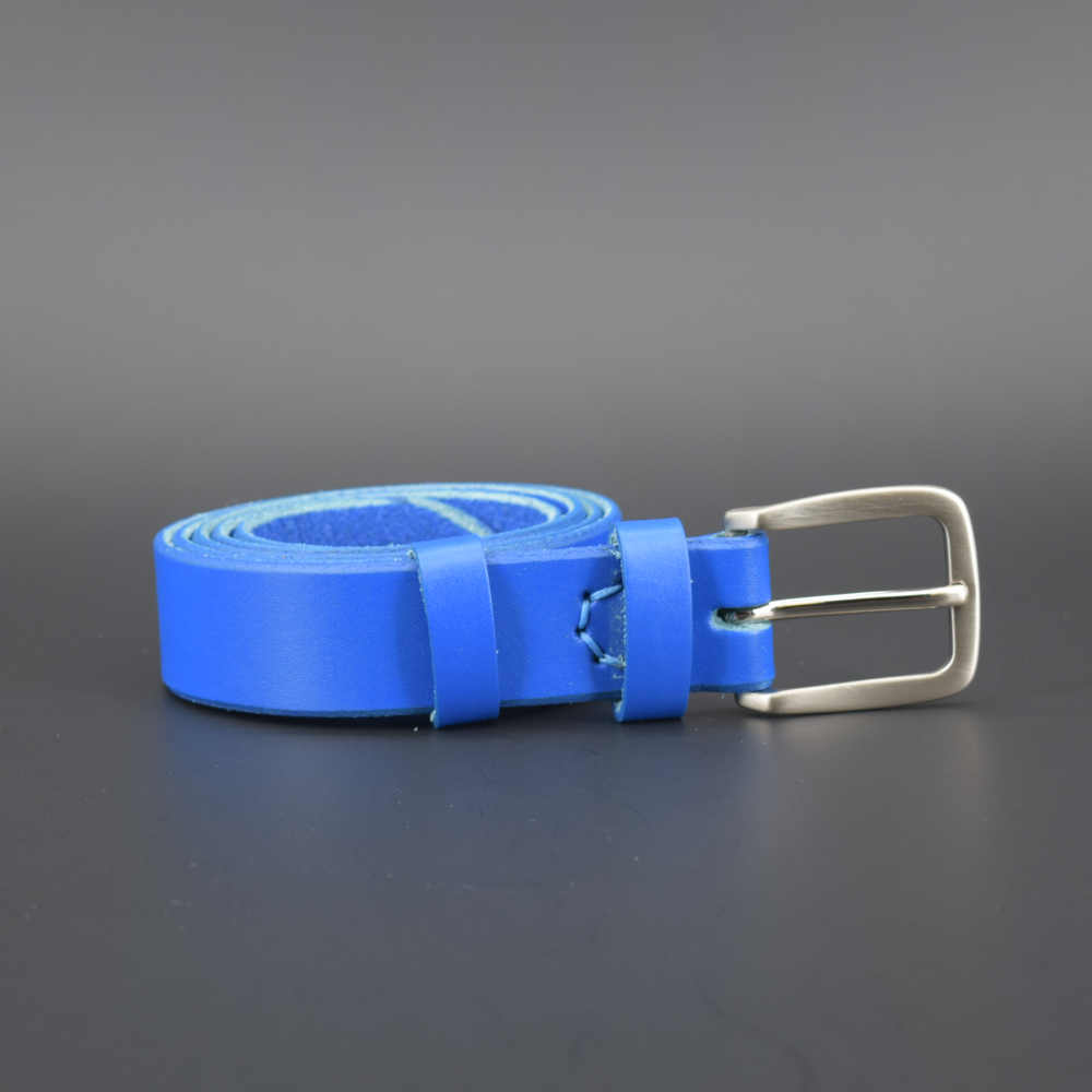 Cette ceinture en cuir bleu est résistante, et est faite pour un usage quotidien. Elle convient autant à un homme qu’à une femme.